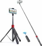 - Premium Aluminum Alloy Pole: Crafted from aviation-grade aluminum alloy, this tall phone tripod is built to last and offers high-quality performance. It includes a Bluetooth remote shutter for hands-free operation.