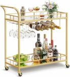 - Make a Stylish Statement: The elegant gold frame, mirrored shelves, and gracefully curved handle make this bar cart a chic addition to your space. It’s not just for serving drinks; it’s also a chance to showcase your unique style and elevate your bar area, dining room, or kitchen.